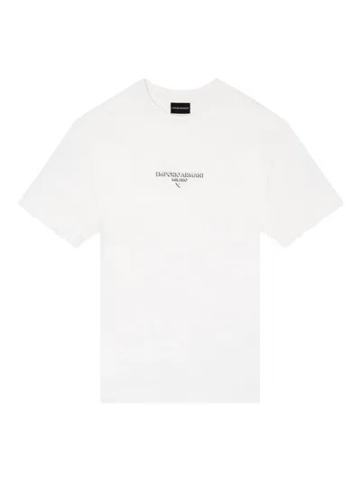 This Emporio Armani Logo T-shirt epitomizes understated sophistication, offering a timeless silhouette with a modern edge. Impeccably tailored from a premium blend of lyocell and cotton, its smooth, refined texture ensures luxurious comfort and breathability for everyday wear. The pristine white hue is elegantly offset by the bold EMPORIO ARMANI MILANO inscription and iconic Eagle emblem, subtly affirming its distinguished designer heritage. Designed with a classic crew neck and short sleeves, this t-shirt boasts minimalist finishes, including finely trimmed hems on the sleeves and bottom edge. Its versatile cut and signature, yet discreet branding, make it an essential addition to a discerning wardrobe, perfectly suited to elevate any ensemble. Why choose this product? Exquisite blend of luxurious lyocell and premium cotton Authentic Emporio Armani designer detailing Timeless crew neck and minimalist silhouette Unmistakable Eagle logo for a subtle statement Refined finishes for enduring elegance and comfort Composition: 70% Lyocell 70% Lyocell 30% Cotton 30% Cotton