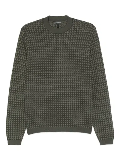 EMPORIO ARMANI Textured Wool Crewneck Jumper With Ribbed Cuffs In Black