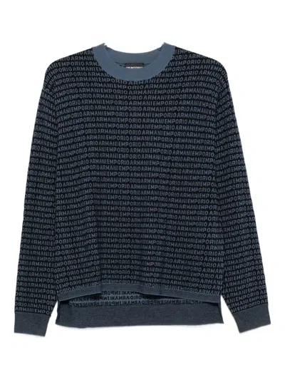 blue wool fabric logo pattern crew neck long sleeves straight hem Composition: Virgin Wool, 100%