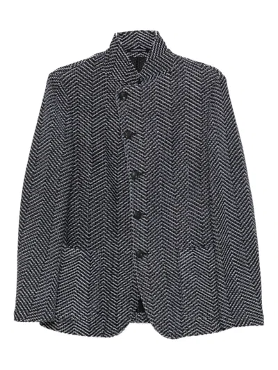 EMPORIO ARMANI Textured Fabric Blazer Featuring Front Pockets In Gray