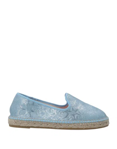 leather, canvas, suede effect, laminated effect, no appliqués, solid color, fabric inner, round toeline, flat, rubber cleated sole, contains non-textile parts of animal origin, closed-toe espadrilles , Color: Sky blue , Size: 11