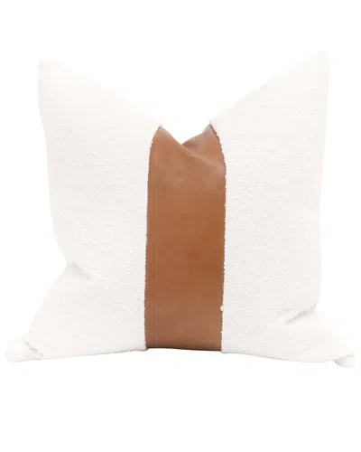Color/Finish: White Design Details: The Essentials For Living Split Decision 20 Essential Pillow Will Liven Up Any Furnishings It Is Paired With. The Pillow Boasts A Luxurious Blend Of Livesmart Boucle Snow White Fabric With A Whiskey Brown Top Grain Leather Stripe At The Center. The Leather Stripe Adds Pop Of Color To The Soft And Elegant Design. The Pillow Is Made Of 96% Polyester And 4% Acrylic Fabric And Filled With 100% Down That Provides Optimal Comfort And Support. With Its Stain-Resistant Treated Fabric, The Pillow Is Easy To Clean And Maintain A Like-New Appearance. It Measures 20 Wide, 5 Deep, And 20 High, Which Is An Ideal Size To Cozy Up To. The Knife-Edge Detail Offers A Unique And Clean Design, Making It An Ideal Addition To Any Contemporary Or Modern Decor. Measurements: 20In X 5In X 20In 96% Polyester - 4% Acrylic Fabric, Top Grain Leather, Down Fully Assembled Imported