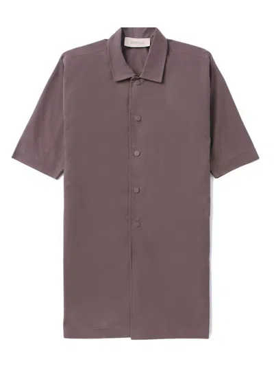purple cotton blend logo print to the rear logo patch to the rear spread collar front press-stud fastening short sleeves straight hem
