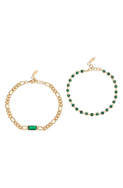 Set Of 2 Chain & Cubic Zirconia Anklets In Green