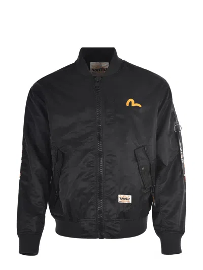 Jacket Evisu in Black Nylon. Logo print on the back and sleeves.Front zip closure, ribbed collar.Embroidered logo on the chest. Fake welt pocket on the chest.Two side pockets with zip.Sleeves with soft shoulder, zip pocket on the sleeve.Inner brushed lining. Inner pocket.Ribbed cuffs and bottom.100% polyamide