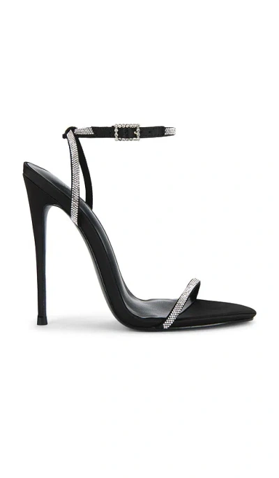 FEMME LA Niched Diamonds Sandal in Black. Size 9. Also in 10, 11, 5, 6, 7, 8. FEMME LA Niched Diamonds Sandal in Black. Size 10, 11, 5, 6, 7, 8. Crystal embellished satin upper with manmade sole. Ankle buckle closure. Faux leather footbed and lining. Almond toe with stiletto heel. Approx 120mm/ 4.75 inch heel. FELA-WZ187. NICHED DIAMONDS.