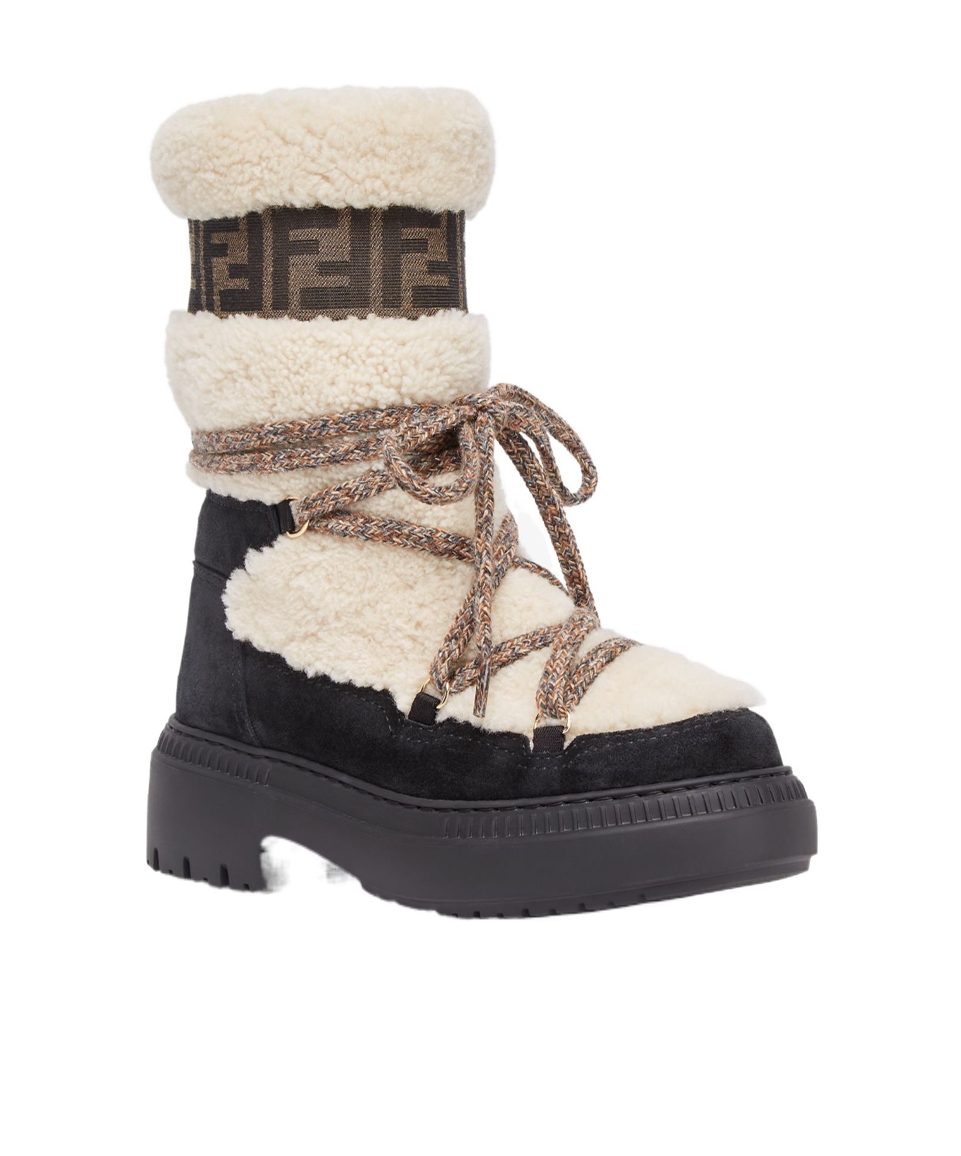 About The Brand: Innovative And Elegant Italian Luxury. Please Note: Size Selections Are European. For Us Conversions, Please Reference Size Chart. Made In Italy Apres Chic Suede Boot In Black Suede, Natural Shearling And Brown Ff Fabric With Gold-Tone Hardware Lace-Up Closure Sheepskin Lining Man-Made Sole 1.5In Heel 1In Platform 7In Shaft 13In Boot Circumference Please Note: All Measurements Are Approximate And Were Taken From A Size 37; Slight Variations May Occur. Our Products Are 100% Genuine. In Some Cases We Purchase Merchandise From Trusted Independent Suppliers And Not Directly From The Brand Owner. In All Cases We Stand By The Authenticity Of Every Product Sold On Our Site.
