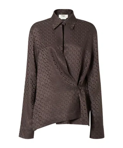 FENDI Wrap Silhouette Long-sleeved Shirt Size 38 In Brown