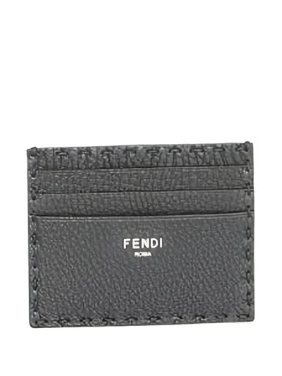 FENDI Leather Saddle-stitching Cardholder In Gray
