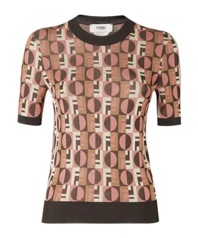 Jacquard shiny viscose sweater with three-dimensional effect geometric pattern Fendi Optical effect, crew neck, and short sleeves. Composition: 100% viscose