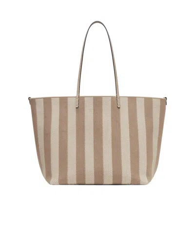 Product details drop up--btn Large shopper bag created in 1997 together with the Baguette and designed to partner it A functional timeless carry-all it is the perfect combination of practicality and refined details Featuring a reversible design it is crafted from jacquard with a Pequin striped motif in pink on one side and jacquard with a Fendi Optical motif on the other a combination of the iconic FF and an Art Deco-inspired graphic in different shades of beige It has a removable inner zipper pocket in cappuccino leather and gold-finish metalware It can be carried by hand or on the shoulder thanks to the cappuccino calfskin handles finished with hand-sewn topstitching an emblem of the iconic Selleria stitching handed down through generations of Fendi artisans since 1925 Made in Italy Composition 57 polyamide 43 cotton 100 calf leather inside 49 polyurethane 28 cotton 23 polyester Materials Size worn null The model is null tall Model height null Size worn null Measurements Height 32 cm Depth 19 5 cm Width 35 cm Weight 1 06 kg Product Code 8BH425AVN6F1U3P Sustainability FENDI AT YOUR SERVICE drop up--btn shipping returns Shipping and Returns Complimentary shipping on all orders Free returns within 14 days online or in store Free exchange in store calendar Book An Appointment Get in touch for an in-store or virtual appointment store In-store Pickup The best of both worlds shop online and pick up your order at your convenience in selected Fendi stores gift Gifting Your order will be elegantly wrapped in our signature Fendi package Add a personal message to send an exclusive gift