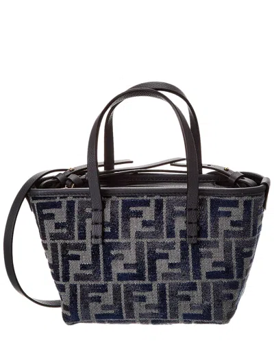 FENDI Roll Mini Ff Canvas & Leather Tote In Blue
