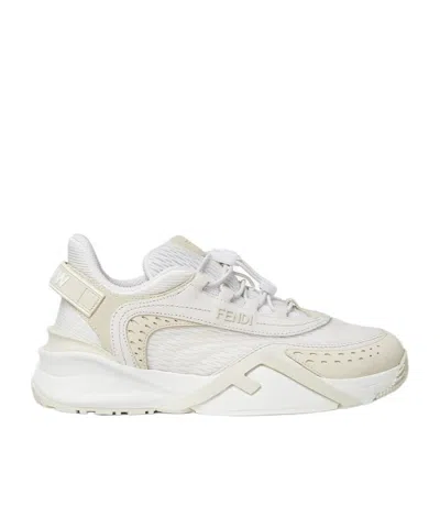 Fendis sneakers strike the perfect balance between sporty style and distinctive design, designed for those who want a bold yet functional look. the textured sole on the heel provides excellent grip and support, while the tone-on-tone press-stamped logo on the heel adds an elegant and understated touch. the front closure with adjustable elastic drawstring laces offers a comfortable and customized fit. the contrasting fendi monogram, applied on the side panel, lends a distinctive and easily recognizable detail. the elongated toe gives a sleek, modern shape, while suede details add a touch of sophistication. the rubber pull-tab on the heel, with the monograms pressure print, offers an additional exclusive accent, making these sneakers ideal for those seeking style and comfort in one. Composition: 50% % Calf Leather Bos Taurus, 50% % Fabric, 100% % Rubber