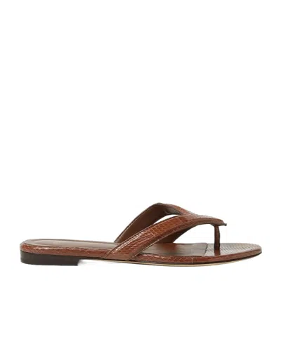 FENDI Textured Leather Thong Sandals With Silhouette In Brown