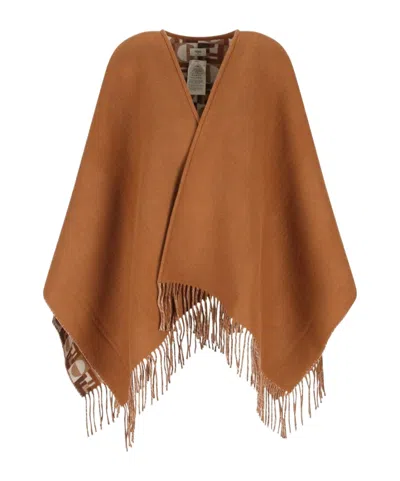FENDI Women Biscuit Wool Blend Reversible Cape In Brown