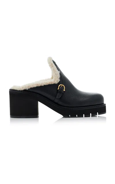 FERRAGAMO Lug-sole Shearling-lined Leather Mules In Black