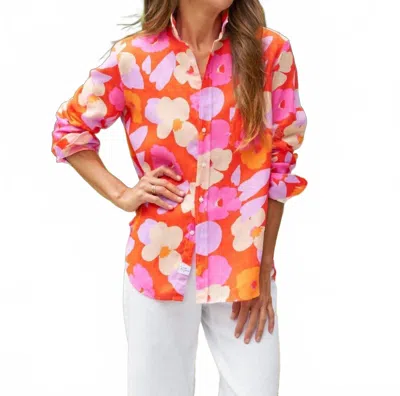 Eileen Relaxed Button-up Shirt In Orange And Pink Floral In Multi