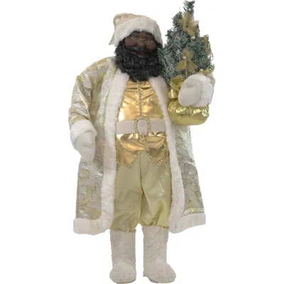 Fhf 36" Aa Santa In White/gold Outfit With Xmas Tree (music) In Green