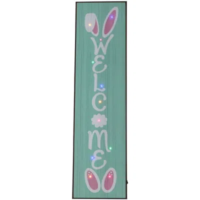Greet your guests with an Easter LED Porch Leaner from Fraser Hill Farm this Spring. Our battery-operated WELCOME sign is 45 inches tall and 12 inches wide. This unique decoration is crafted from MDF and then trimmed with multicolor soft-glow lights to create a festive display that will last season after season. A sturdy pullout kick-leg keeps your decor standing tall. Perfect for either indoor or covered outdoor use, place it on your porch, in your foyer, or next to your fireplace to create a fun holiday scene everyone will love. Use it as a prop for Easter photos with the family. Your porch leaner arrives fully assembled - simply unpack, add your own batteries, and display. You can count on quality products from Fraser Hill Farm to help you celebrate each holiday throughout the year.