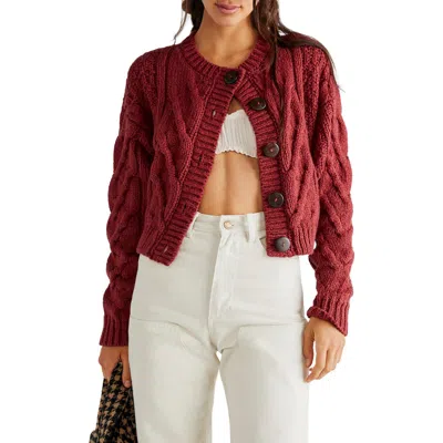 FREE PEOPLE Bonfire Cable Knit Cardigan In Red