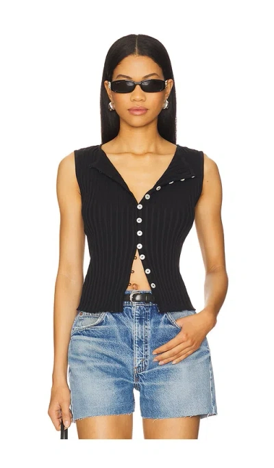 Free People Tilly Vest in Black. Size L, S, XS. 95% cotton 5% elastane. Machine wash. Front button loop closure. Midweight ribbed jersey fabric. FREE-WS5114. OB2078588. Free People invokes a spirit of femininity and creativity. Throughout their line of sweaters, tees, dresses and more, each piece incorporates a high level of quality and originality that reflects their adventurous it girl. With all that's constricting in the world today, Free People says your clothes don't have to be. Be yourself, be creative, be free.