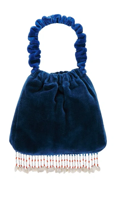Free People VANCOUVER 手拿包 – Navy & Lapis - Navy. 尺码 all. Velvet exterior with linen lining. 进口. Elastic open top styling. 一个主隔层. Beaded fringe trim with plastic crystals. 约为 20 cm 宽 x 17 cm 高 x 3 cm 深肩带垂直高度约 10 cm. FREE-WY41. OB2033454.