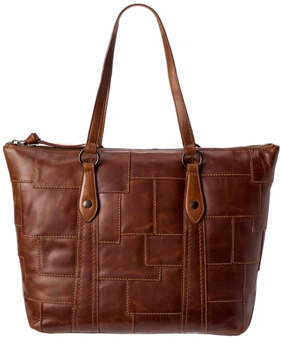 FRYE Melissa Patchwork Zip Shopper Tote Bag In Brown