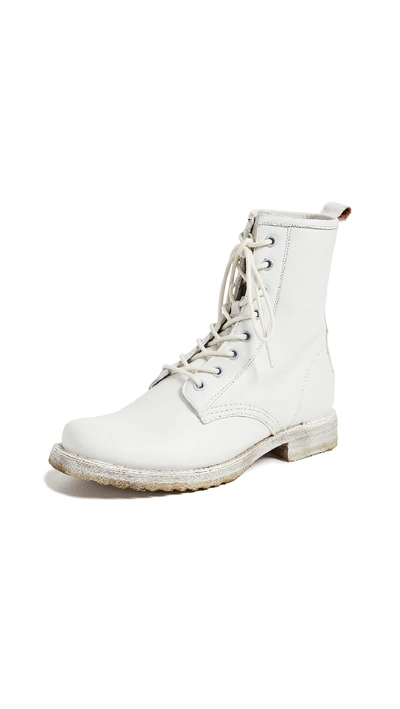 FRYE Women's Veronica Round Toe Leather Combat Booties In White