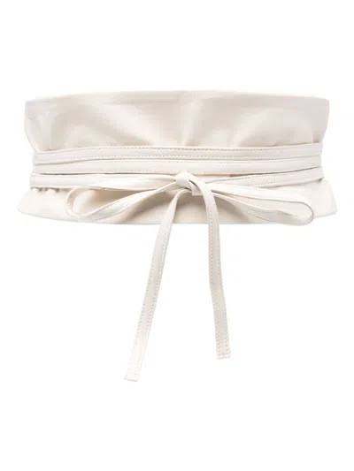high-waist tie-fastening belt from FURLING BY GIANI featuring off-white, calf leather, wraparound style, high waist and self-tie fastening. Geisha tie-fastening leather belt Maximum Length: 80.0 Centimetres. WIDTH: 10.0 Centimetres.Item #: