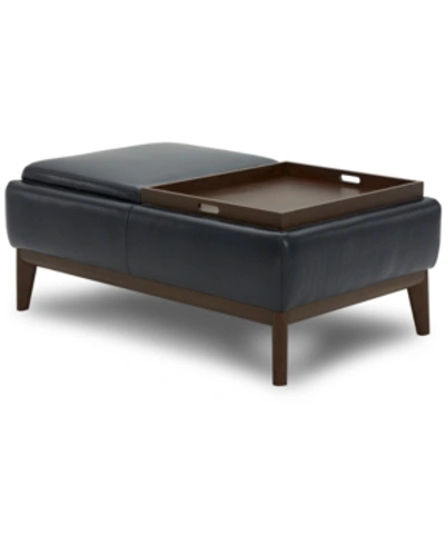 FURNITURE Jollene Leather Ottoman With Wood Trays, Created For Macy's In Navy