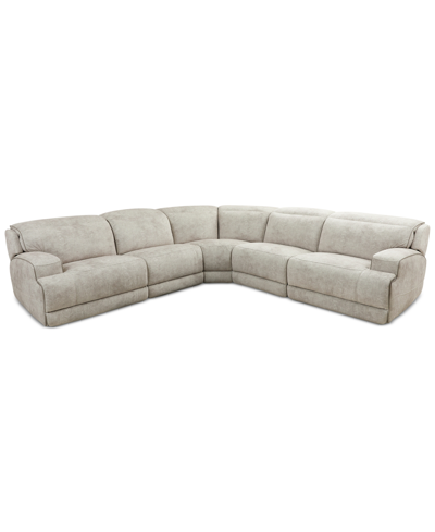 FURNITURE Sebaston 5-pc. Fabric Sectional With 3 Power Motion Recliners, Created For Macy's In Highlander Stucco