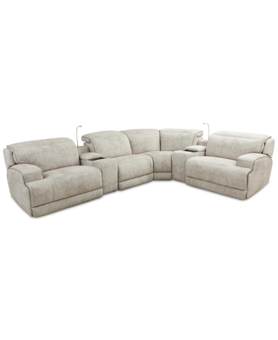 FURNITURE Sebaston 6-pc. Fabric Sectional With 2 Power Motion Recliners And 2 Usb Consoles, Created For Macy's In Highlander Stucco