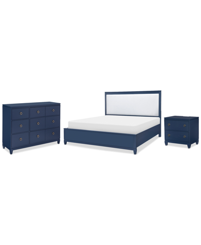FURNITURE Summerland 3pc Set (king Upholstered Storage Bed, Dresser, Nightstand) In Blue