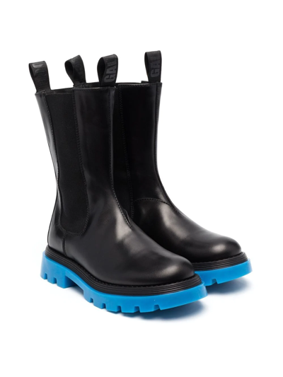 elasticated side-panel boots from GALLUCCI KIDS featuring elasticated side panels, double pull-tab at the opening, round toe, branded insole, ridged rubber sole, jet black, leather and ankle length.