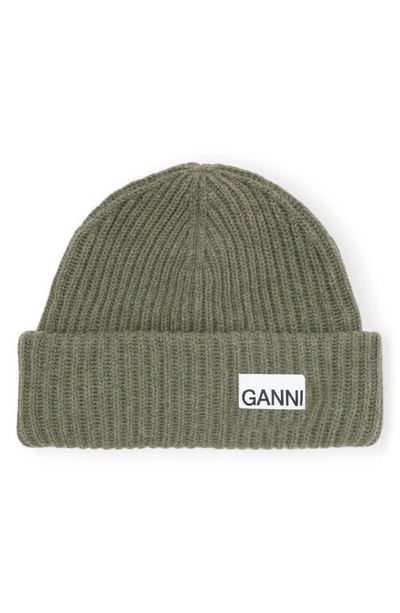 GANNI Loose Wool Rib Knit Beanie In Kalamata