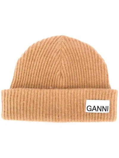 GANNI Recycled Wool Ribbed-knit Hat In Tiger's Eye