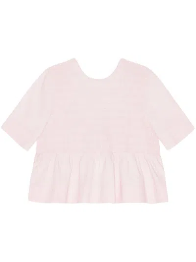 GANNI Smocked-panelling Poplin Blouse In Pink