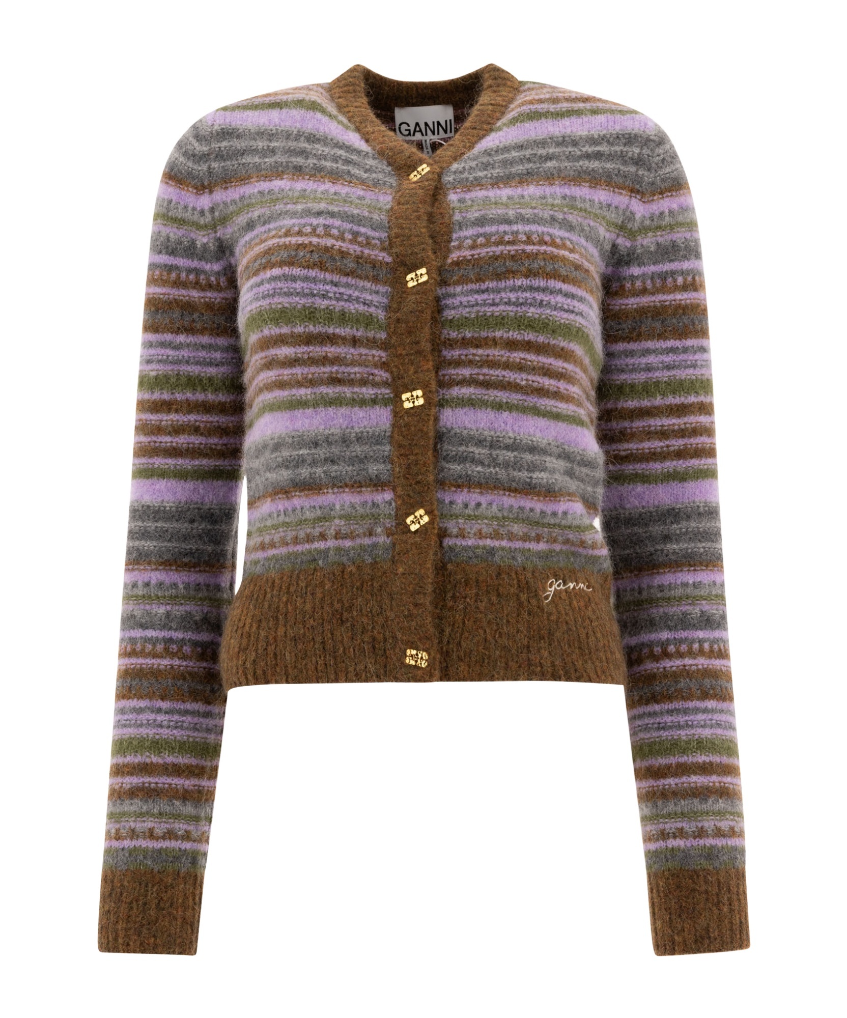 GANNI Embroidered Stretch Alpaca Blend Cardigan In Multi