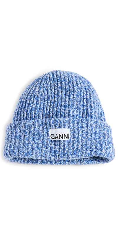 GANNI Structured Rib Wool Blend Beanie In Nautical Blue
