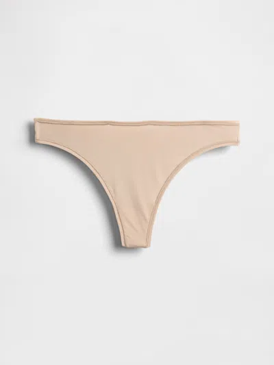 Soft, super-stretchy nylon-blend thong underwear. Elasticized waistband and leg openings. This product was made in a factory that invests in gender equity and women’s empowerment through RISE. Learn more at gapinc. com/equity. Low rise. High-cut leg. Minimal back coverage. For more fit and sizing info, check out our Size Guide.