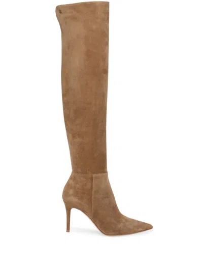 GIANVITO ROSSI 85mm Jules Suede Knee-high Boots In Tan