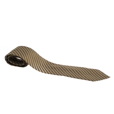Pre-owned Vintage Olive Green Jacquard Traditional Silk Tie
