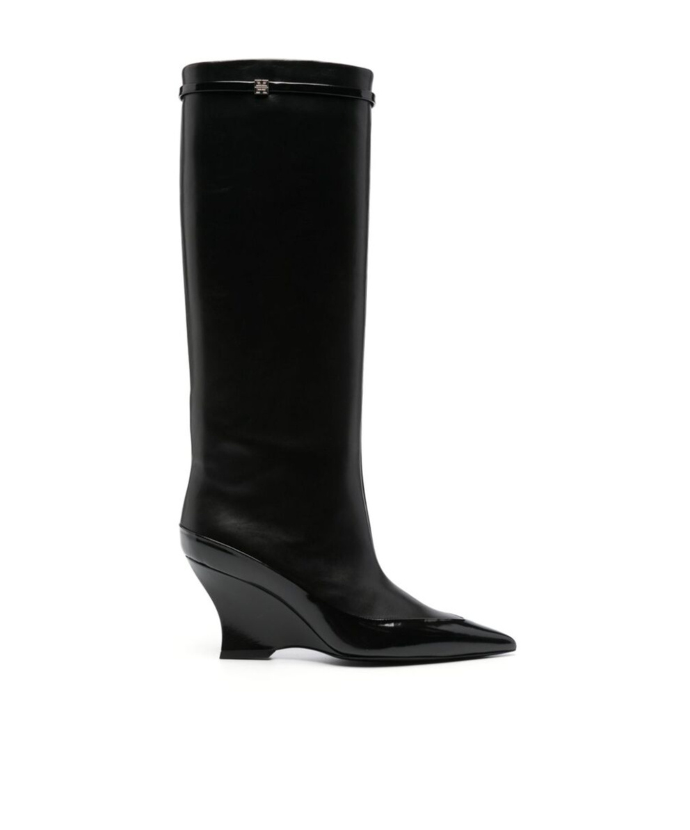 GIVENCHY Wedge Heel Raven Leather Boots 9cm In Black