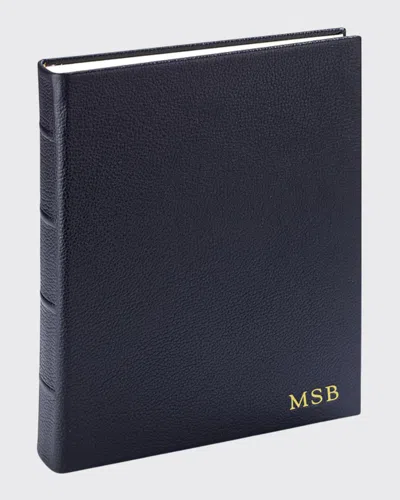 Photo album is made of pebble grain leather. Includes 500 self-adhesive photo squares for easy mounting. Personalization with up to 3 initials in gold lettering. 60 pages with 30 leaves of archival quality. Approx. 8"L x 9.5"T x 2"W. Wipe clean. Made in the USA of imported materials.