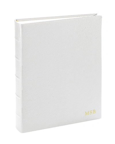 Photo album is made of pebble grain leather. Includes 500 self-adhesive photo squares for easy mounting. Portrait format with 100 pages with 50 leaves of archival quality. Personalization with up to 3 initials in gold lettering. Approx. 9"L x 12.2"T x 2.5"W. Wipe clean. Made in the USA of imported materials.