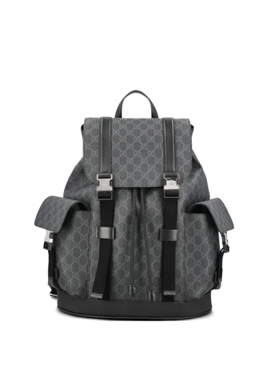 GUCCI Logo Patterned Backpack In Gray