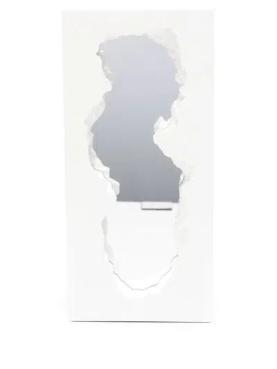 white rectangle shape mirror cracked effect embossed logo to the rear