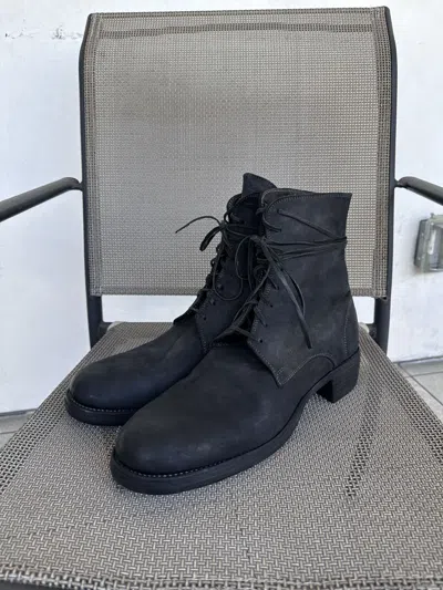 For My Archive Guidi Collectors This One Is Worth A Look; This Circa 2009-2010 Pre-Mass-Production-Era Guidi Model ‘795’ Classic Combat Boot Shape With An Exaggerated Stacked Leather Heel Form ‘Z’ Is A Piece Of Guidi History; There Is Only One Other Pair That Circulated Japanese Auction About 5 Years Ago From The Movie Set Matrix Reloaded (2003). Backstory, This Piece Was Custom Ordered By A Long-Standing Client Of Guidi For Use On-Set Of Book Of Eli (2010). It Was Intended For Look 8 For Bandit 3 Of The Antagonist. It Remained Unused Because The Leather Soles Were Too Slippery For The Actor To Move Quickly On Wet Ground. (These Were Produced Before Guidi Started Sending Pairs Out With The Vibram Protection). The Leather Is Comprised Of A Very Unusual ‘Hand-Buffed’ (Not Heat-Scarred) Cordovan Shell. Unlike Most Of All Guidi Manufacture Being Calf Leather Full-Grain. With A Matted And Oiled Appearance, The Shell Cordovan Interestingly, Gives A Super Soft Hand Feel… Like Reverse Bison. These Are Sold As Is. What You See Is Exactly What You Get. Please Take A Close Look At All Images. They Are Exact To Condition. Size It 46, Us 13; Best For A True Size 12. Standard Width Last. In The Usa!! Thank You | Guidi From The Set: “Book Of Eli” 795Z. 46/13 Shoes in Black, Men's