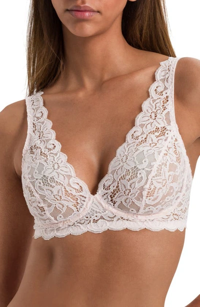 Stretch soft cup V-neck bra with intricate lace embellishments. V-neck Adjustable spaghetti straps Square back Back clasp closure 82% polyamide/18% elastane Hand wash Made in Portugal SIZE & FIT Model measurements: 5'11" tall Model is wearing a US size Small. Lingerie - Hanro > Hanro > Saks Fifth Avenue > Barneys. HANRO. Color: Gentle Pink. Size: 36A.