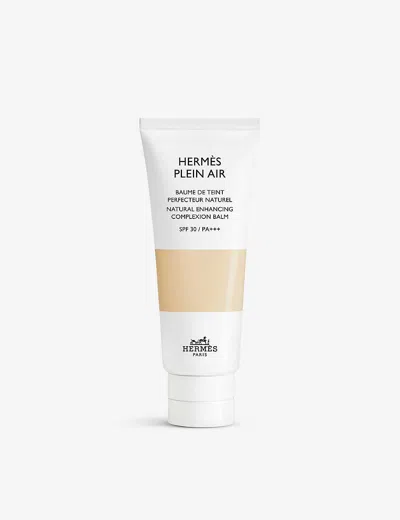 Hermès first entered the world of beauty with its now best-selling lipstick selection that quickly gained a cult following thanks to the range of versatile shades. Now, the Parisian powerhouse is extending its portfolio and introduces the Plein Air collection. Filled with everything you need to achieve a radiant complexion; the assortment includes the Complexion balm. Created by Christine Negel, the hydrating blend provides a natural glow for up to eight hours as well as SPF30 protection.| Hermès Plein Air Complexion balmApplication: Tap Hermès Plein Air natural enhancing complexion balm onto the forehead, temples, cheekbones and chin, then gently blend all over the face with the fingertips for a second skin effect. To adjust coverage, to correct occasional redness or blemishes for example, gently tap on a little extra natural enhancing complexion balm where requiredSkin type: Suitable for all skin typesSPF3040mlFor hygiene reasons, this product cannot be exchanged or refunded, unless faulty.